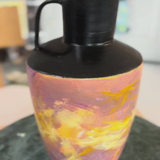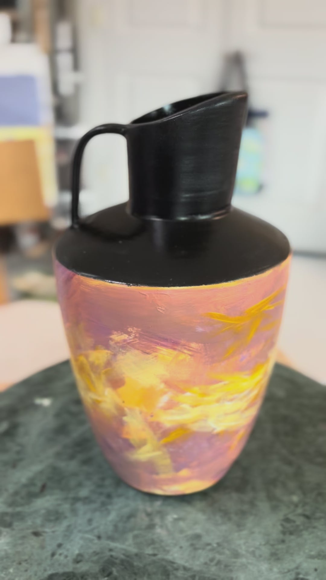 I referenced the beautiful Greek vessels with my black top and narrow band at the bottom and went contemporary with the paint.