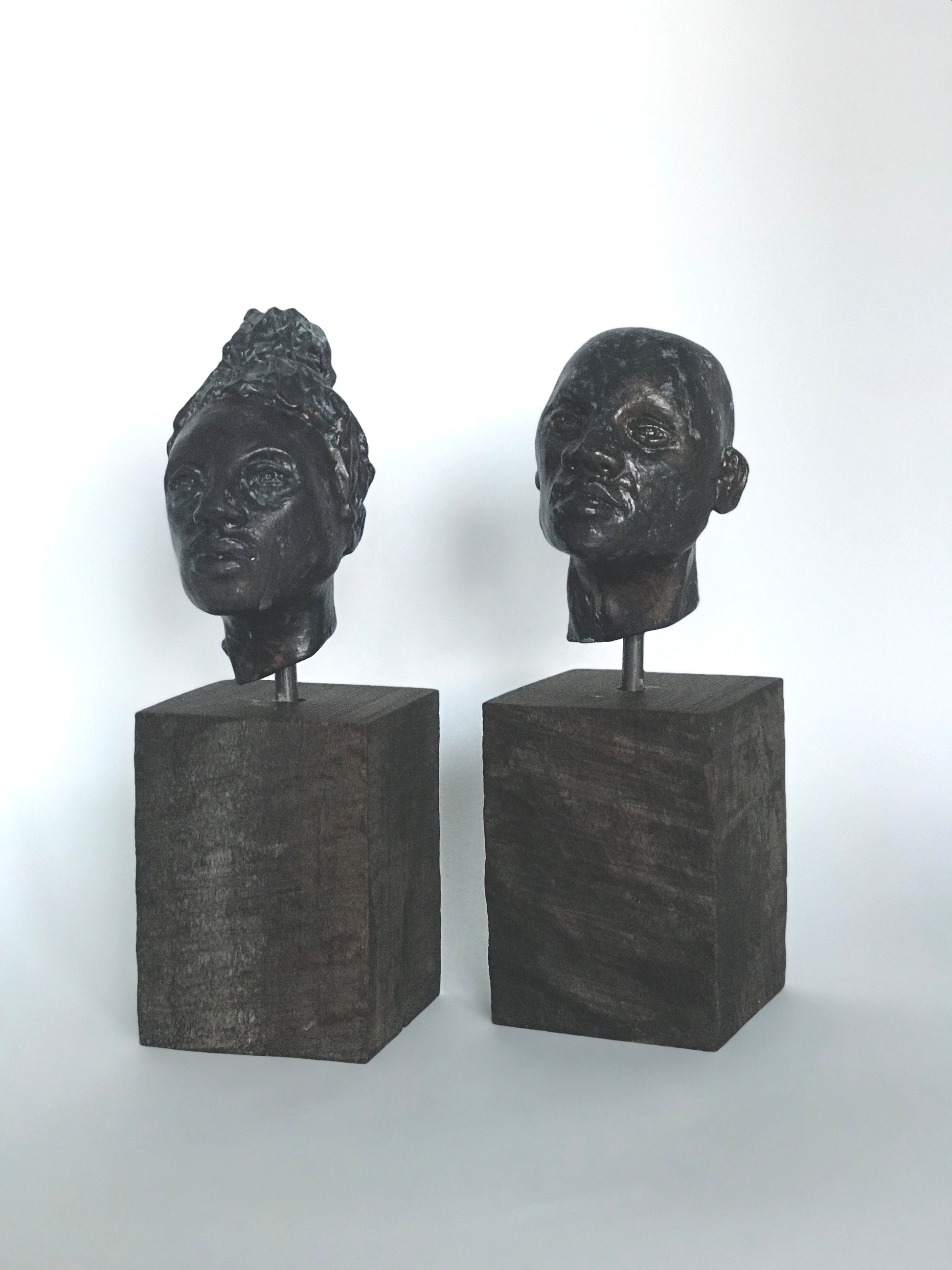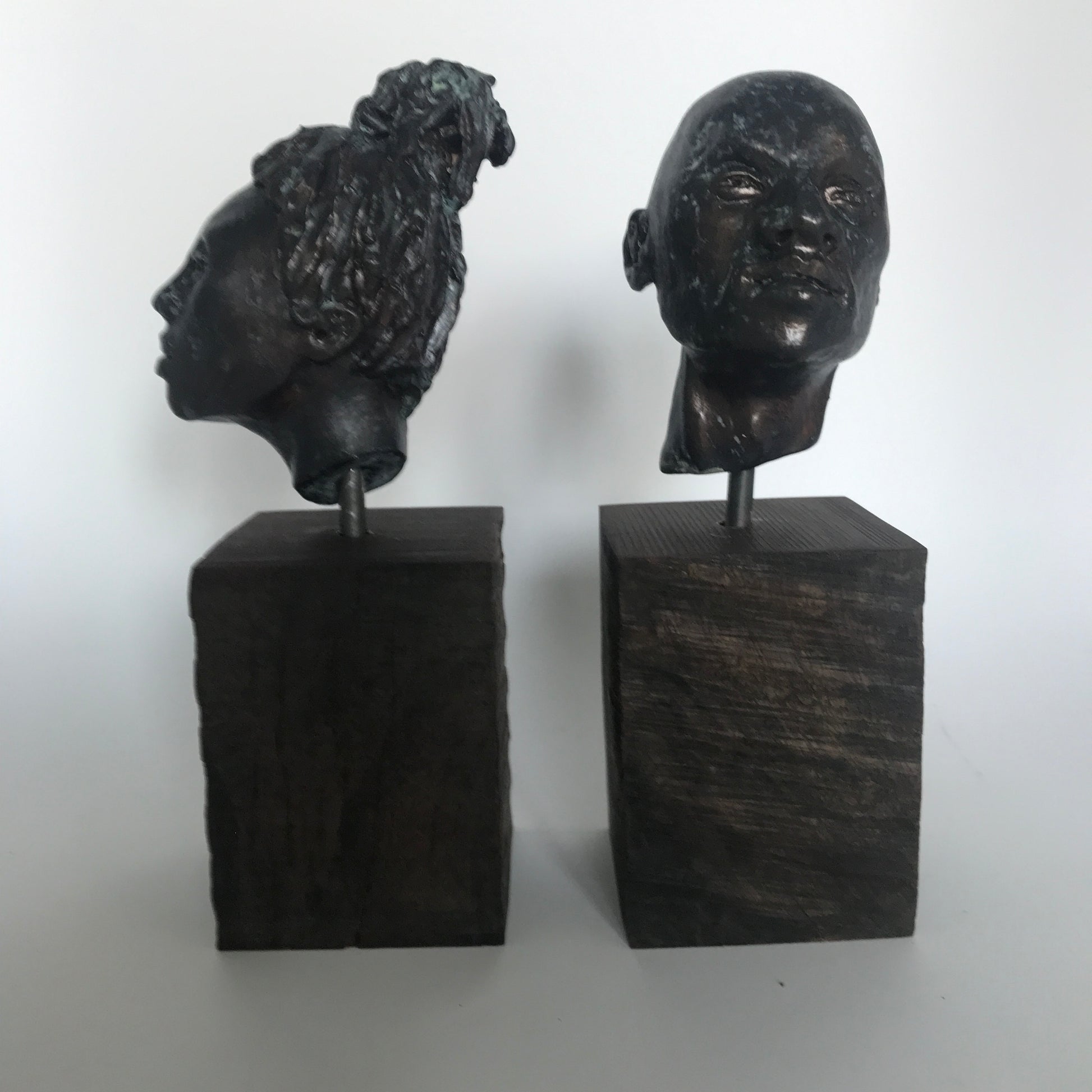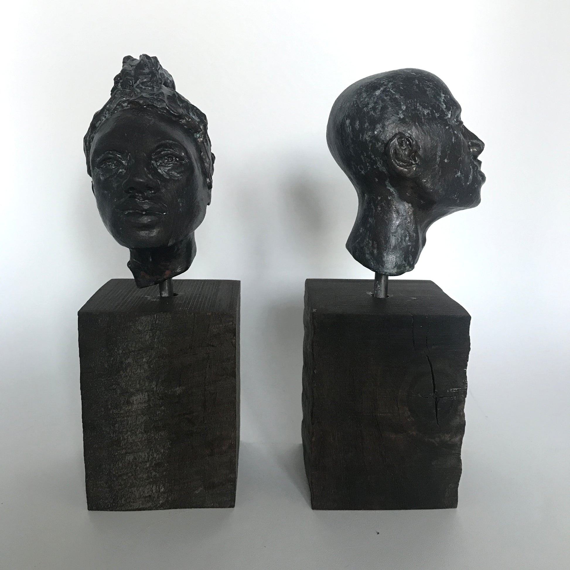 When the Black Lives Matter movement began, my heart broke for the ugliness we try to deny and hide around racism, and I asked myself what I could do about it. I realized that I could say to the Black people around me that I see you, and you are beautiful. This is a small pair, a man and woman, on small rough-wood bases.