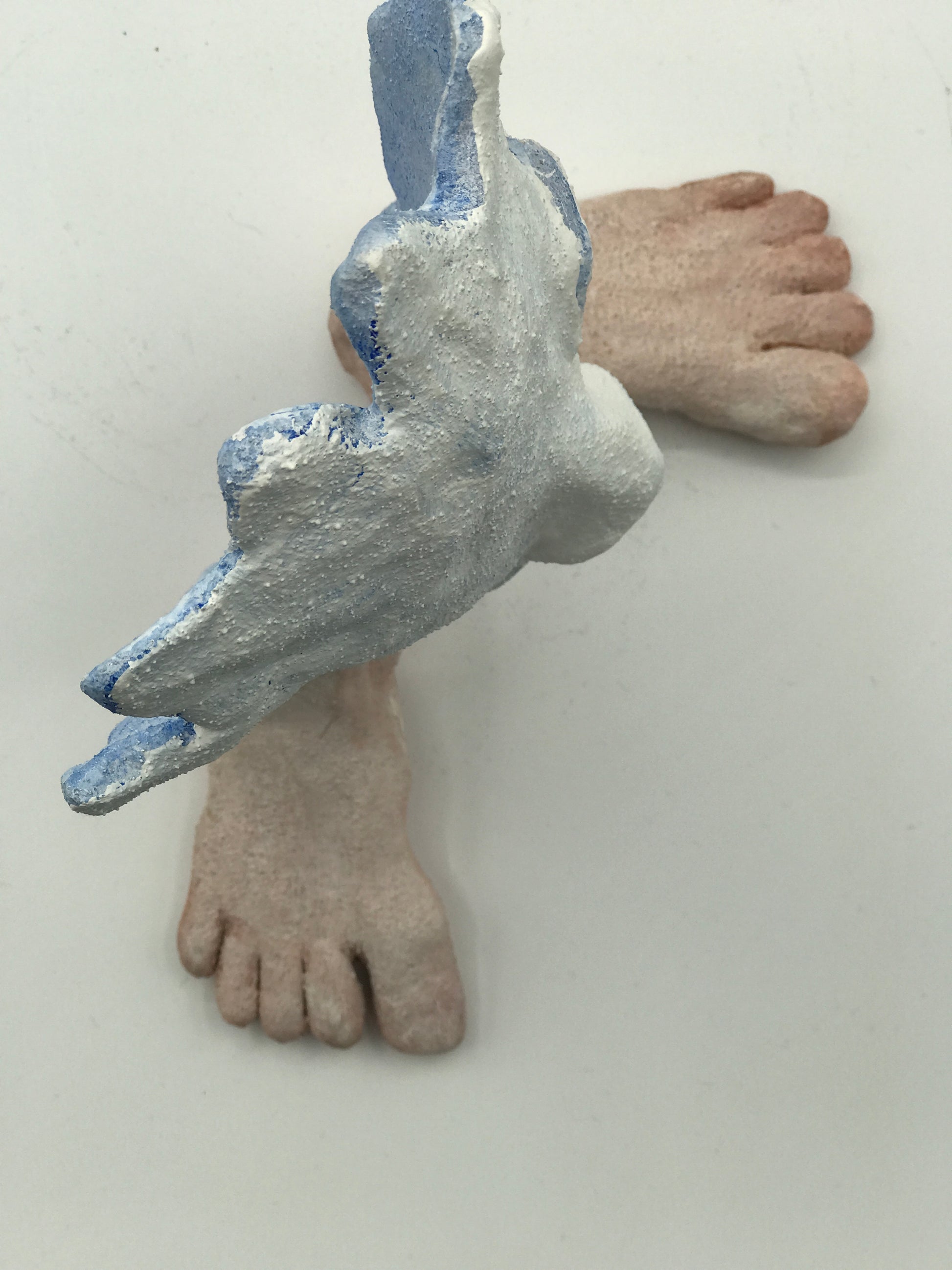 This surreal sculpture of a face on feet would like to know why you are staring.